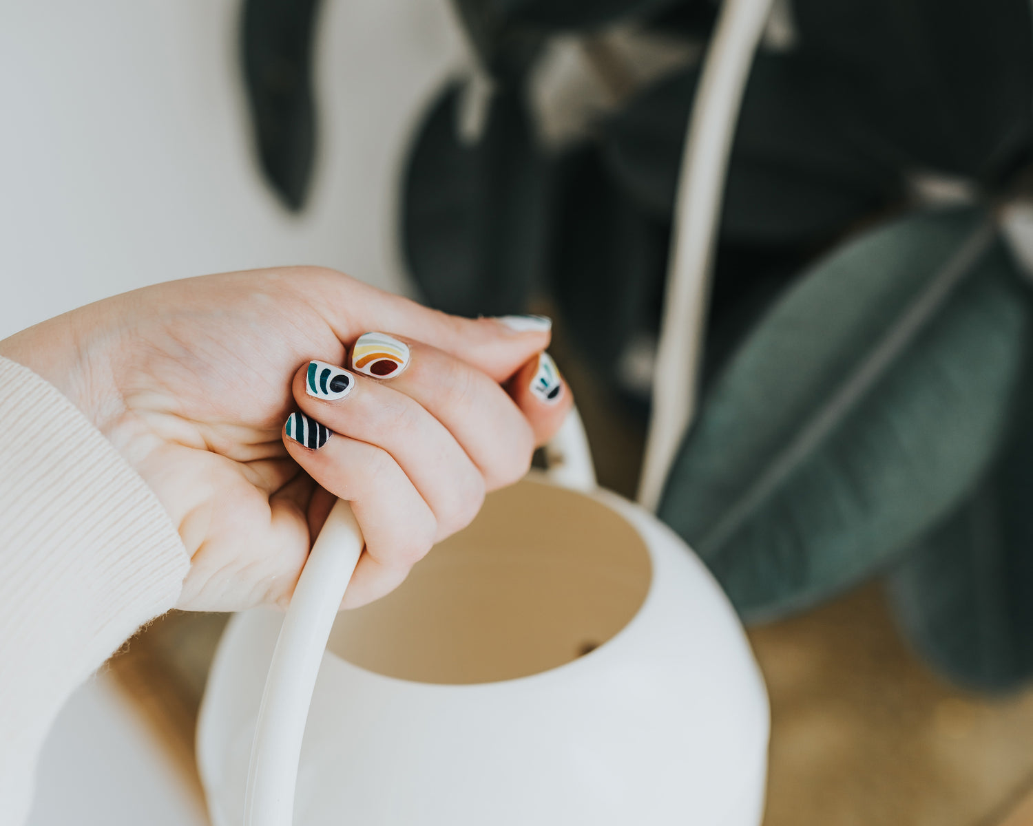 Grab your sunhat because our SECRET GARDEN nail wrap kit is the ultimate escape. Dotted with dainty sections of green, pink, and yellow polka dots, leafy green tulips bloom across a transparent backdrop, creating a garden at your fingertips.